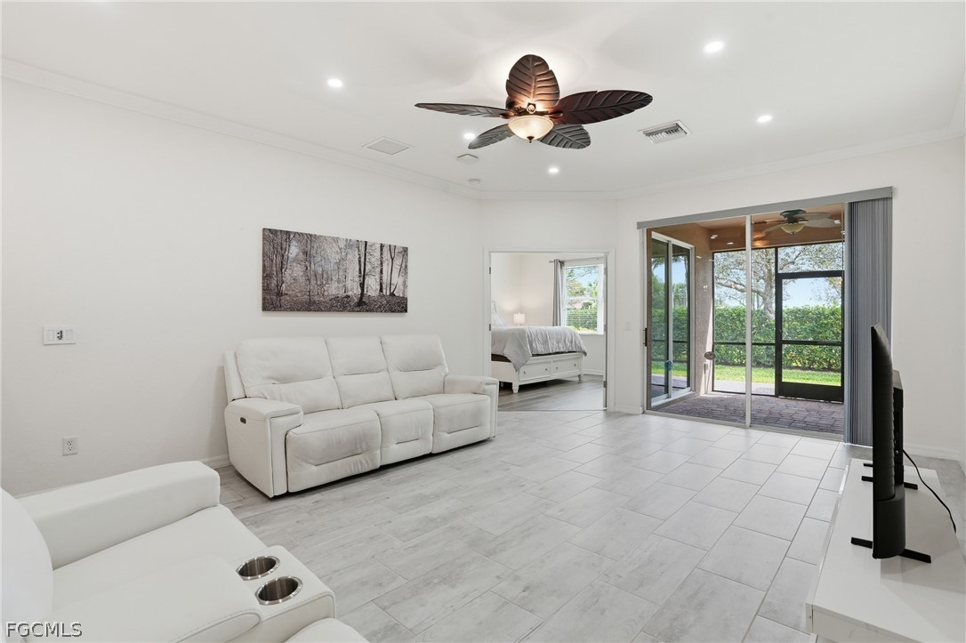 Step outside to enjoy the extended patio and screened lanai, providing additional outdoor living space ideal for relaxing or entertaining while enjoying Southwest Florida’s beautiful weather.