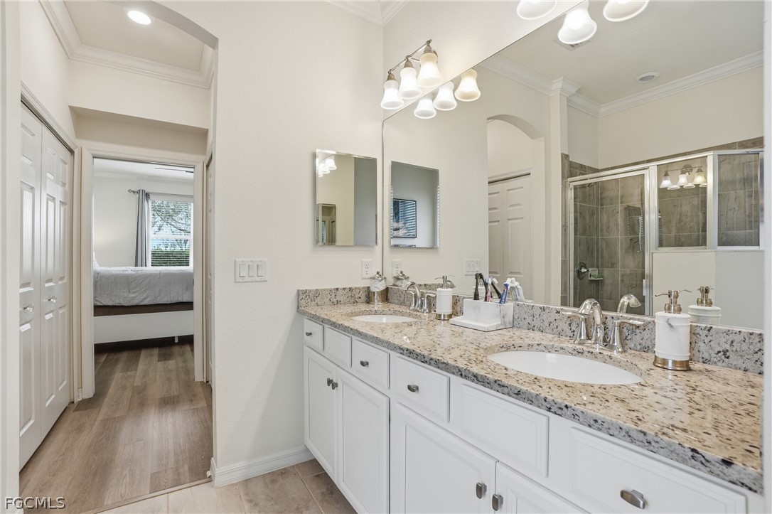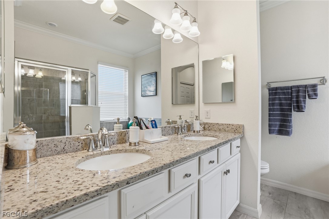 One of the standout features of this property is the rare primary bathroom layout with both a soaking tub and a separate walk in shower, a feature that many villas in the community do not offer.