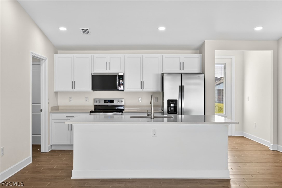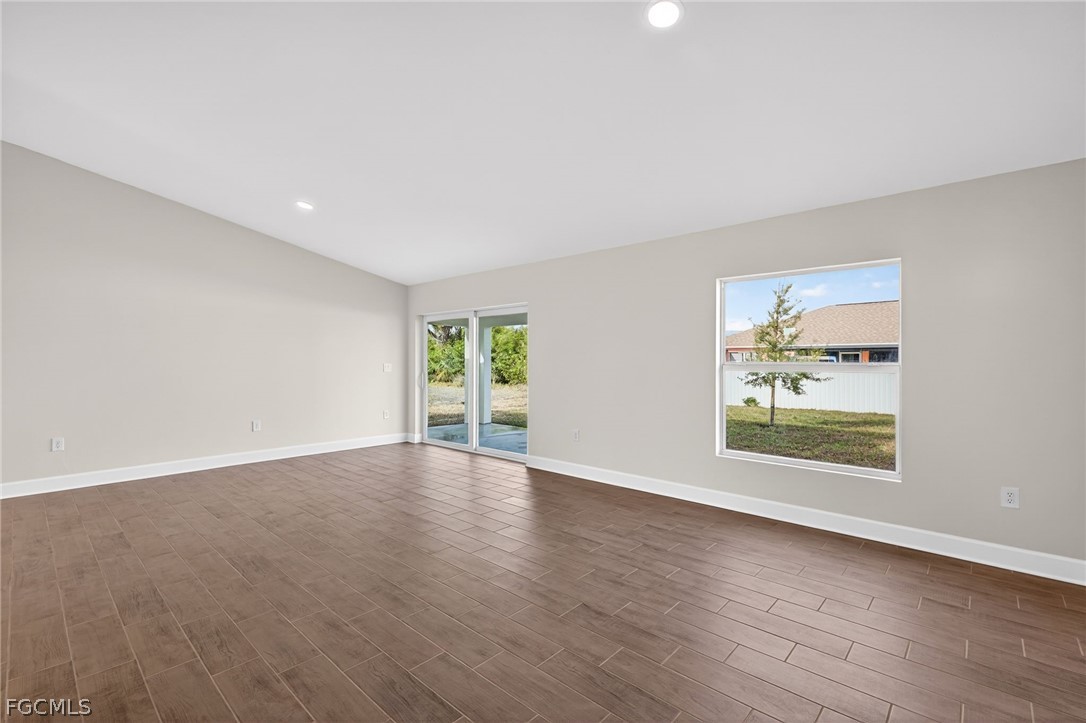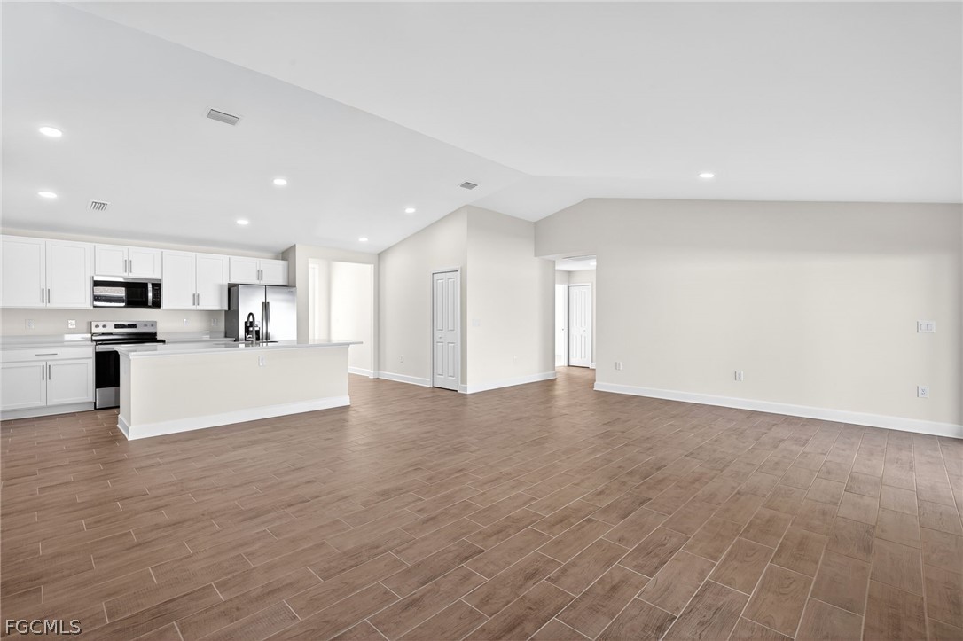 MOVE IN READY NOW! NO WAIT FOR NEW CONSTRUCTION! This is the highly sought-after Sunset Harbor Plan! This exceptional home offers modern coastal living with a thoughtfully designed layout, featuring four spacious bedrooms and three full bathrooms, including dual primary suites—perfect for multigenerational living or hosting guests in comfort. Set on a centrally located lot in north Cape Coral, this home showcases an open-concept design filled with natural light and stylish finishes throughout. The chef-inspired kitchen is the heart of the home, complete with stainless steel appliances, all-wood shaker cabinetry with abundant storage, sleek quartz countertops, and a large island with breakfast bar seating. A generous pantry adds even more functionality and organization. The expansive great room flows effortlessly into the dining area, creating an inviting space ideal for both everyday living and entertaining. Beautiful tile floors greet you at the front door. Outside, the spacious lot offers endless possibilities for outdoor living, a future pool, or custom enhancements to create your own private retreat. NO FLOOD ZONE + IMPACT WINDOWS = LOW INSURANCE and peace of mind. Built with quality craftsmanship and designed for today’s lifestyle, this home is a rare opportunity at this price point. One or more photo(s) was virtually staged. This is the Sunset Harbor Plan.