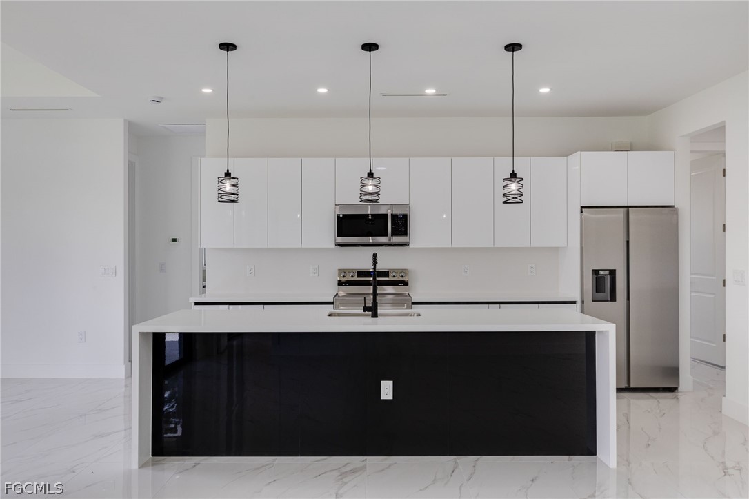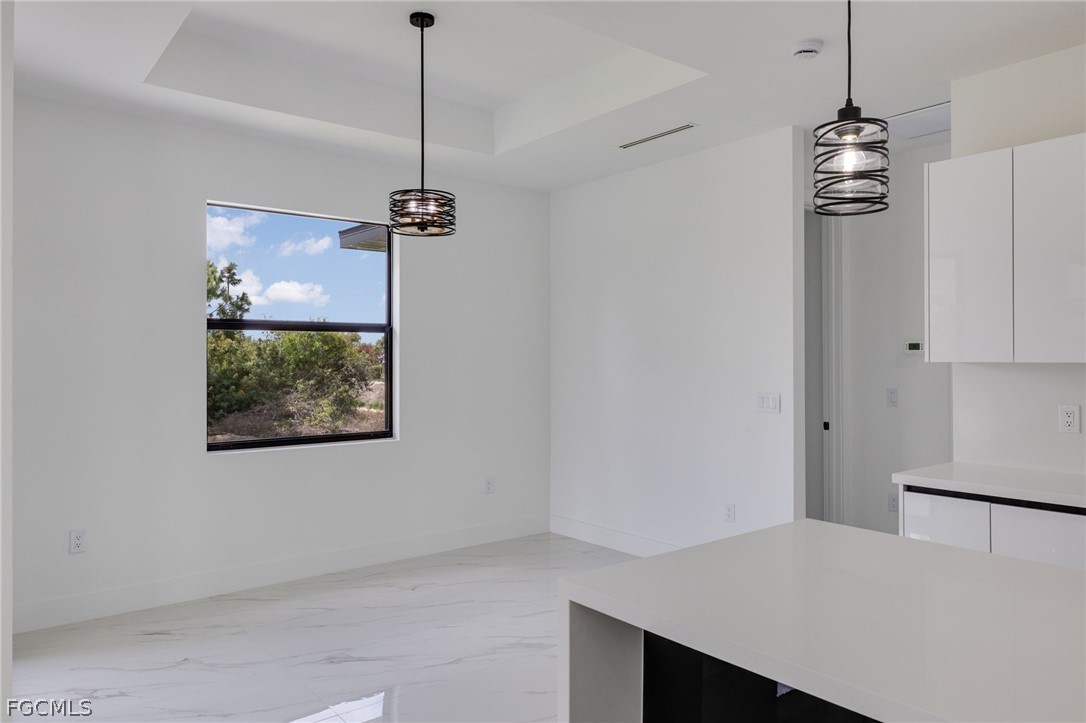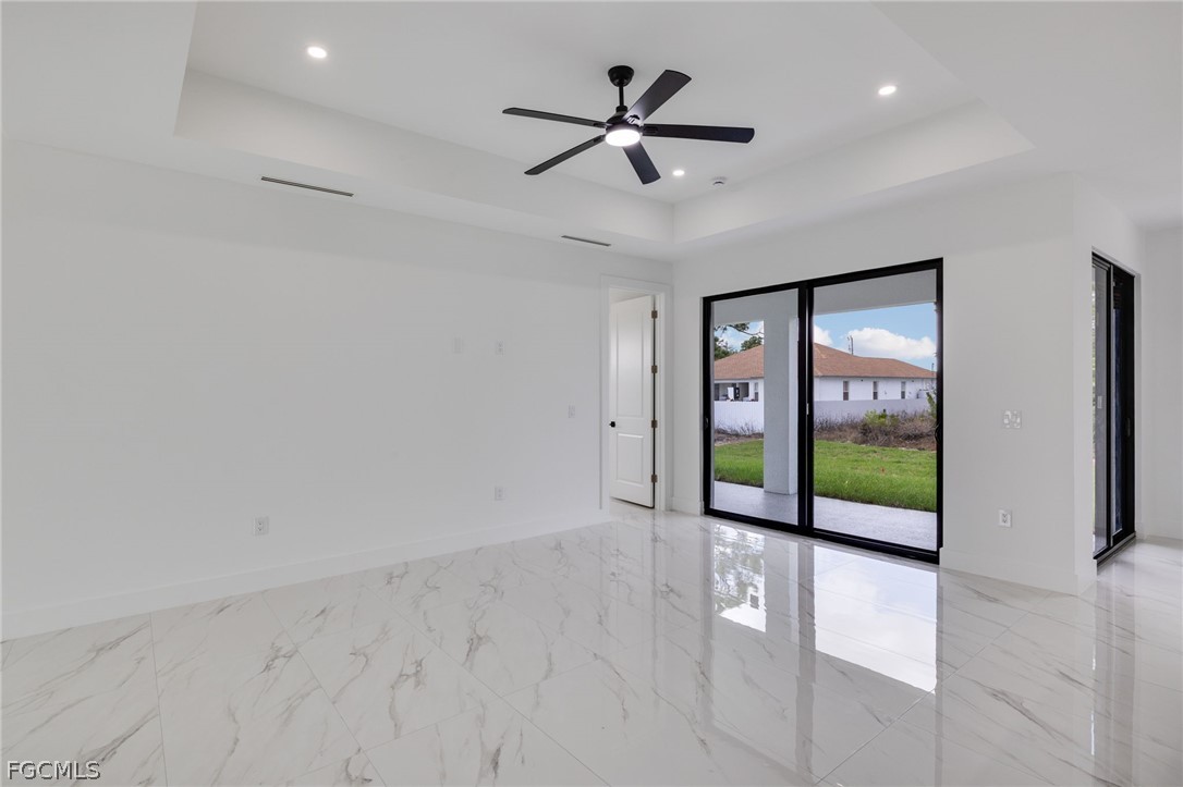 Welcome to Modern Luxury Living — Move-In Ready & Designed to Impress! Step into this stunning, move-in ready masterpiece where contemporary design meets everyday elegance. This beautifully appointed 3-bedroom, 2-bathroom home with a den offers the perfect blend of sophistication and functionality — ideal for those who refuse to compromise on style. This move-in ready property features a bright, open-concept layout with high tray ceilings and elegant marble tile flooring throughout. The kitchen is equipped with chic, modern cabinetry. Enjoy a polished, epoxy-finished lanai and a 2-car garage, also with an epoxy floor. Full impact-rated doors and windows provide security and peace of mind. This is a must-see!