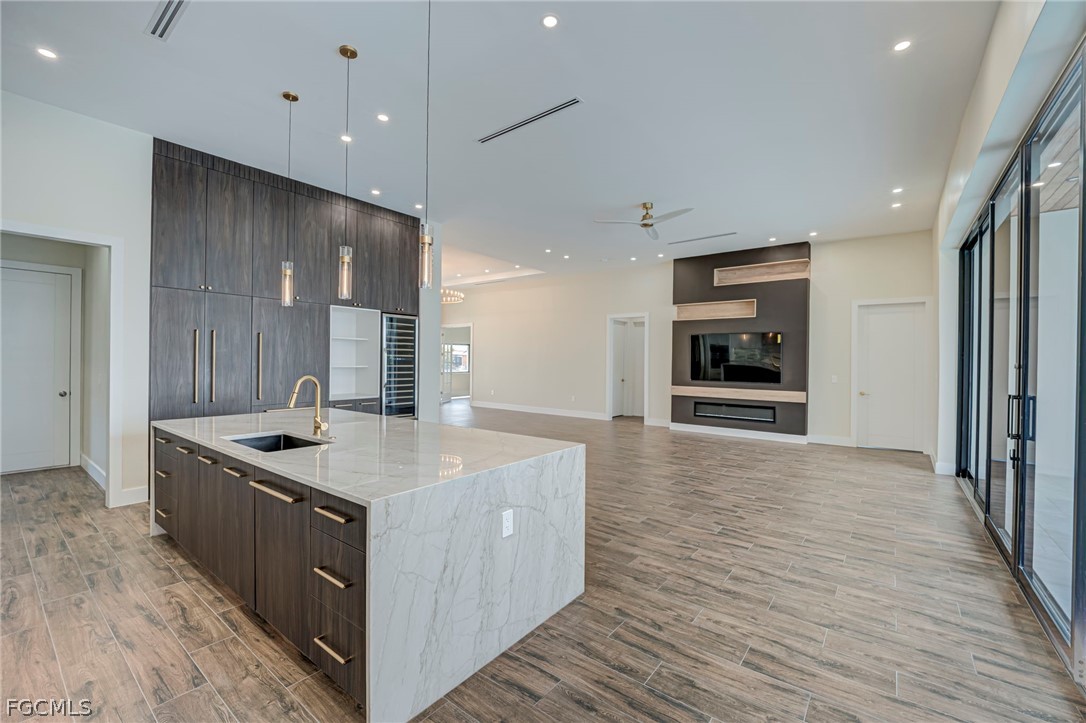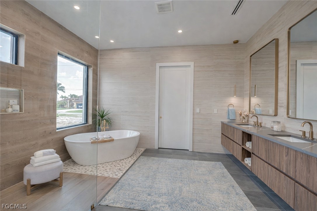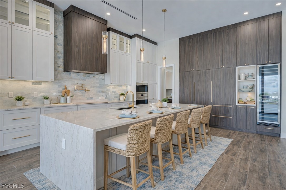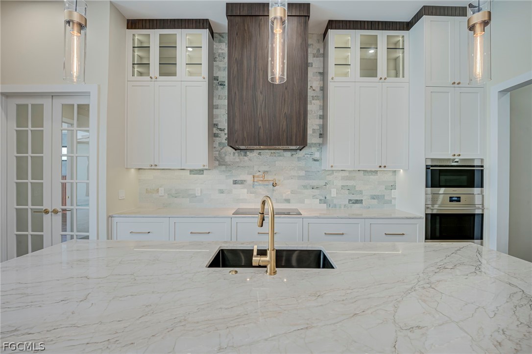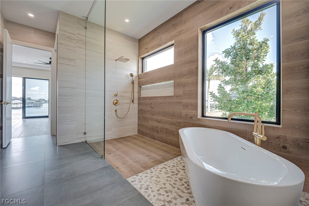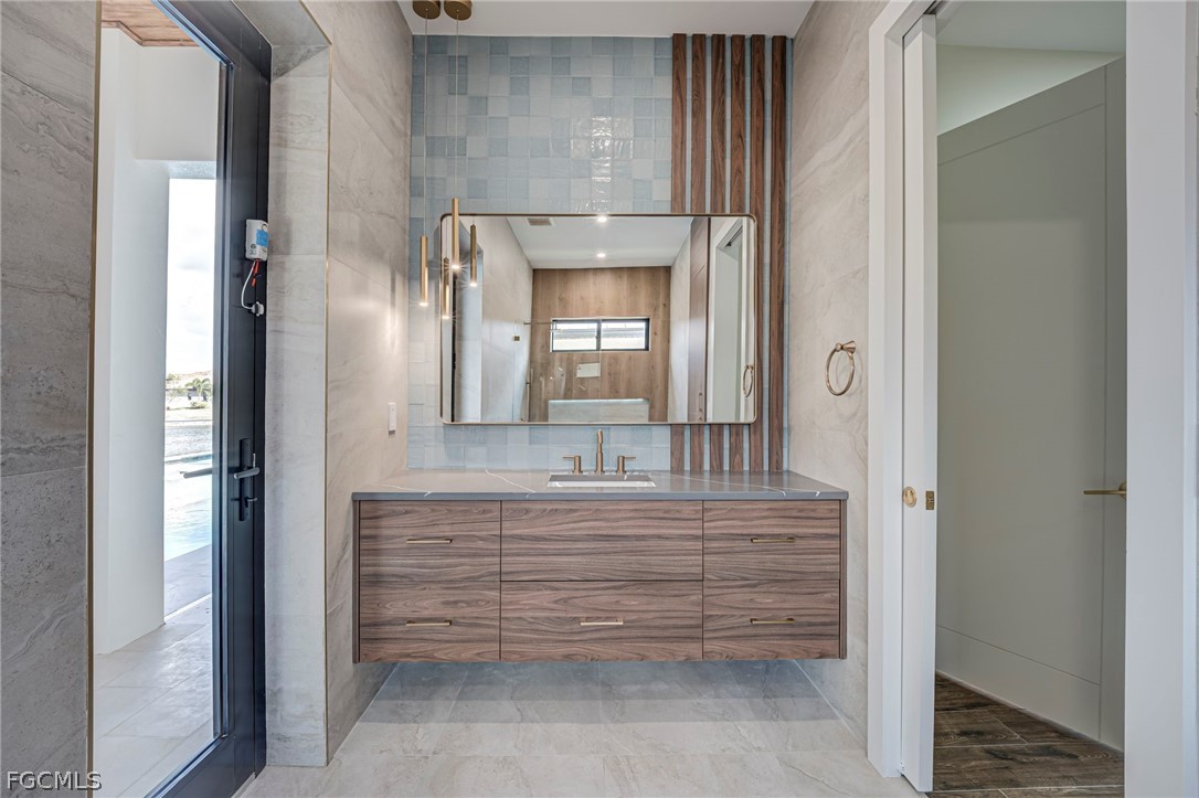 Experience the ultimate Florida lifestyle in this stunning new construction, custom-built waterfront home located in the rapidly growing Northwest Cape Coral Tropicana area. Offering 3 bedrooms plus a den, 3 full bathrooms, and a spacious 3-car garage, this impressive 2,869-square-foot residence was thoughtfully designed to combine modern luxury with everyday comfort and efficiency. Built with energy-efficient ICF (Insulated Concrete Form) reinforced concrete construction and topped with a sleek metal roof with foam insulation, the home delivers exceptional strength, durability, and efficiency. A high-efficiency Carrier air conditioning system, thermal insulated garage doors, LED lighting throughout, and a tankless water heater further enhance performance. Inside, soaring 14-foot ceilings and elegant tile flooring throughout create a bright, open atmosphere. Custom architectural ceiling details and beautiful wood plank ceiling accents add warmth and sophistication. Impact-resistant ESW Prestige windows and doors provide superior protection and insulation while filling the home with natural light. Dramatic 10-foot sliding glass doors seamlessly connect indoor and outdoor living while showcasing waterfront views. The kitchen is a showpiece, featuring custom Italian cabinetry, premium Sub-Zero and Wolf appliances, and stunning quartzite countertops with a waterfall island. A large hidden walk-in pantry offers both convenience and style. The space is complemented by decorative lighting, high-end plumbing fixtures from Kohler, Delta, and Kingston, and solid wood interior doors throughout the home. The luxurious primary suite provides a peaceful retreat with custom-built closet systems and a spa-inspired bathroom featuring an oversized shower, soaking tub, and dual floating vanities. The primary closet also offers convenient access to the spacious laundry room. Step outside to an exceptional waterfront outdoor living space overlooking a breathtaking 230-foot-wide intersecting Gulf-access canal. The expansive lanai features elegant white marble flooring and wood plank ceilings, creating the perfect setting for relaxing or entertaining. The outdoor kitchen includes premium appliances including a Napoleon grill, gas burners, and a quartzite countertop bar. A custom-designed heated saltwater pool with integrated spa overlooks the tranquil water views. Additional features include a deep well with whole-house reverse osmosis water purification, a 500-gallon water tank, 400-amp electrical service, epoxy-coated garage flooring, smart-home technology, Wi-Fi irrigation controls, and security cameras. Ideally located near the highly anticipated Seven Islands waterfront development and boardwalk, this exceptional home offers direct Gulf-access boating, modern luxury finishes, and cutting-edge construction in one of Cape Coral’s fastest-growing neighborhoods. Schedule your private showing today and experience this remarkable waterfront home.