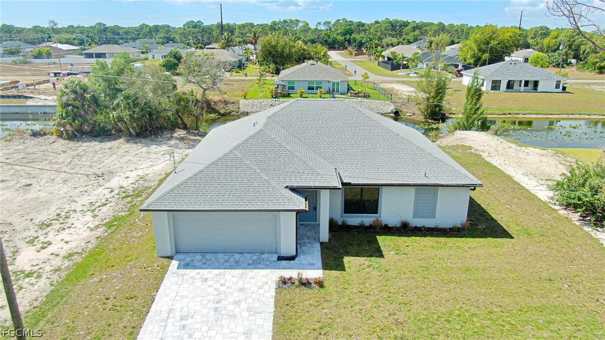 This is a MUST SEE! BRAND NEW WATERFRONT HOME WITH 4 BEDROOMS, 2 FULL BATHS, TWO CAR GARAGE, AND UPGRADES! Fantastic, OPEN floor plan with CATHEDRAL CEILING, sliders to the outside, split bedrooms and a pool bath! Plenty of room to add a future pool. Wonderful neighborhood with new homes all around, convenient to parks, restaurants, shopping, schools, boat ramps, golf & more! Enjoy the peaceful canal views with lots of wildlife! Beautiful TILE floors with carpeted bedrooms! All 4 bedrooms have TRAY CEILINGS and ceiling fans/lights! EXTENDED LANAI with dual ceiling fans/lights! The island kitchen is GORGEOUS with quartz tops, stainless steel appliances and a pass-thru window to the lanai! The master suite has a big TRAY ceiling, sliders to the lanai and two WALK-IN closets! The master bath has a tiled shower, quartz tops with dual sinks and a separate commode area! Inside laundry room with washer, dryer, shelving and a pantry! Plenty of STORAGE in this home! PAVERED driveway, walk-way and front porch! Built-in lights in the soffits too! NO FLOOD INSURANCE REQUIRED HERE! This home is priced right and 100% of the proceeds will go to CHARITY! Don't miss this exceptional opportunity to own this fantastic waterfront at an affordable price!