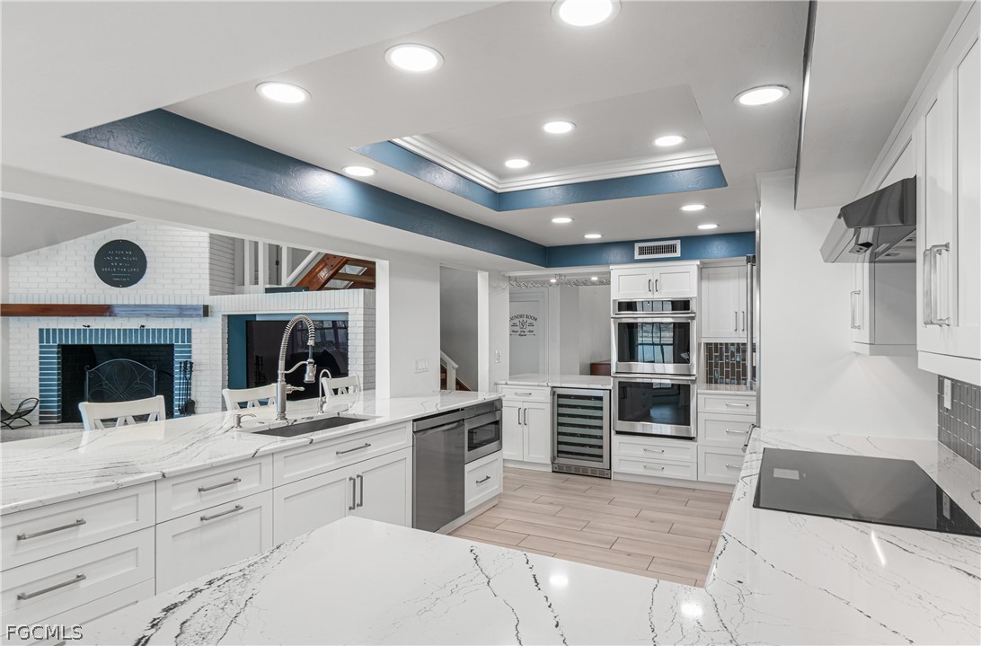 This meticulously maintained home blends luxury and functionality with soaring cathedral and volume ceilings, real wood-burning fireplace, built-in cabinets, surround sound, and spacious living areas perfect for entertaining or everyday comfort. Step outside to your private backyard beach paradise for boating, water skiing, or lakeside fun.