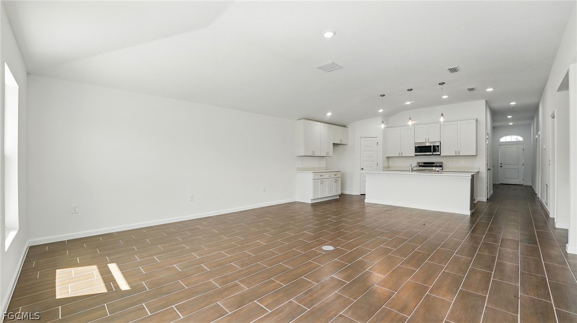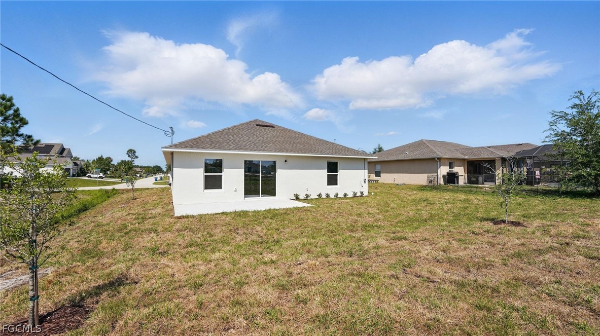 Beautiful new construction home offering a modern open-concept layout with high-end finishes throughout. The spacious kitchen is designed for both style and function, featuring Samsung stainless steel appliances, quartz countertops, an oversized island, white shaker cabinets with 42" uppers, dovetail drawers, and soft-close cabinetry, plus a convenient dry bar area. Designer recessed LED lighting enhances the bright and inviting living spaces. The home features designer tile flooring throughout, vaulted ceilings in the main living areas, and structured low voltage wiring for data and cable. The primary suite offers a tray ceiling, spacious walk-in closet, and a well-appointed bathroom with dual vanities, Corian countertops, designer tile, and Moen fixtures. All bedrooms include LED lighting and ceiling fan pre-wiring. Enjoy Florida living outdoors with a large rear concrete patio, professional landscaping, and full Bahia sod coverage. The property includes a private well system with water treatment installed prior to closing and a septic system. Additional highlights include hurricane storm shutters, vinyl insulated tilt-out windows, a two-car garage with prewired garage door motor, and an oversized turnaround driveway. No HOA and convenient access to nearby shopping, dining, and commercial areas. Home includes a 2-10 builder warranty plus a 1-year builder bumper-to-bumper warranty for added peace of mind.