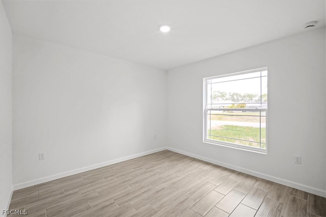 This beautifully crafted new construction home offers a modern open-concept floor plan with designer finishes throughout and the added benefit of NO HOA. The spacious kitchen is designed for both everyday living and entertaining, featuring Samsung stainless steel appliances, quartz countertops, white shaker cabinetry with 42-inch uppers, dovetail drawers, soft-close cabinets, and an oversized island with designer recessed LED lighting. The home features designer tile flooring throughout, creating a seamless and low-maintenance living space. The bright, open living area includes recessed LED lighting, a convenient floor outlet, vinyl insulated tilt-out windows, and structured low-voltage wiring for data and cable. The spacious primary suite includes a large walk-in closet and a private bath with a double vanity, Corian countertops with undermount sinks, Moen designer faucets, elongated toilets, and designer wall tile and lighting. All bedrooms include LED lighting and ceiling fan prewiring. Enjoy outdoor living on the large rear concrete patio overlooking a professionally landscaped yard with Bahia sod covering the full lot. The property also includes a private well water system with a water treatment system installed prior to closing. Additional features include hurricane storm shutters, a two-car garage with a prewired garage door motor, ample storage throughout the home, and a 2-10 builder warranty plus a 1-year builder bumper-to-bumper warranty. Azalea Model 3 bedroom septic system ATU in front good for pool at rear.