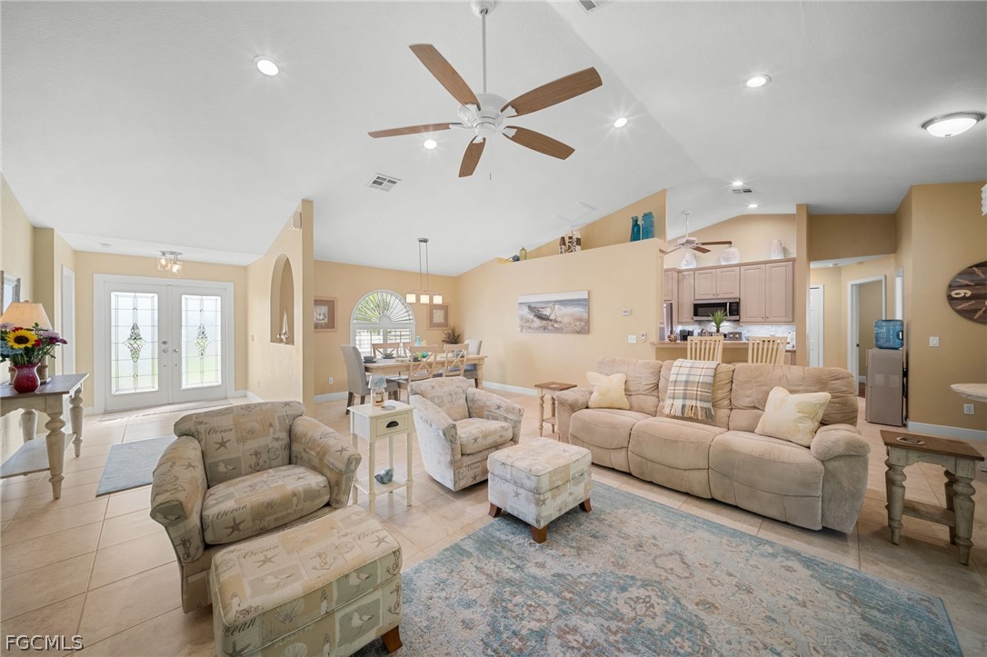 Well maintained 4 bedroom, 2 bathroom home with 1,720 square feet under air in NW Cape Coral near Coral Oaks Golf Course, set on a corner lot with a renovated kitchen and private fenced yard. Buyers searching for a move-in ready home in Northwest Cape Coral near the Trafalgar corridor will appreciate the thoughtful updates, major system improvements, and comfortable living spaces throughout. Inside, tile and bamboo flooring run through the home, creating a clean and low maintenance interior with no carpet. The renovated kitchen features granite countertops and upgraded cabinetry, offering plenty of storage and workspace for everyday cooking or hosting friends and family. Both bathrooms have been updated, and plantation shutters throughout the home add character while allowing flexible light and privacy control.
