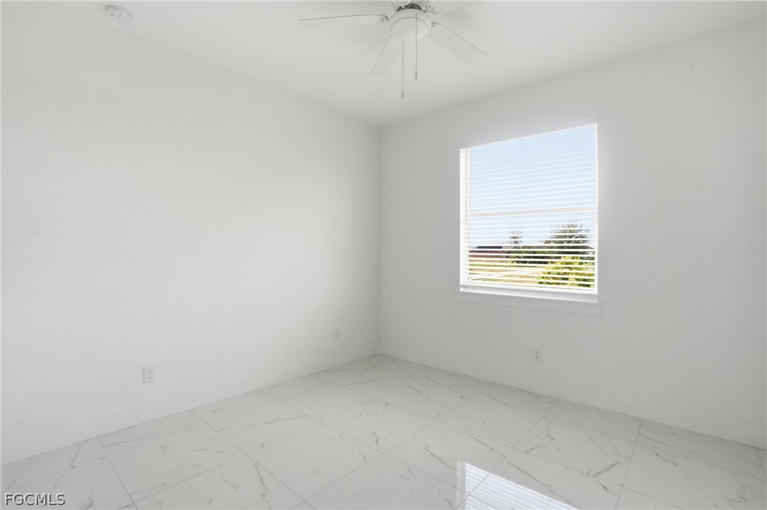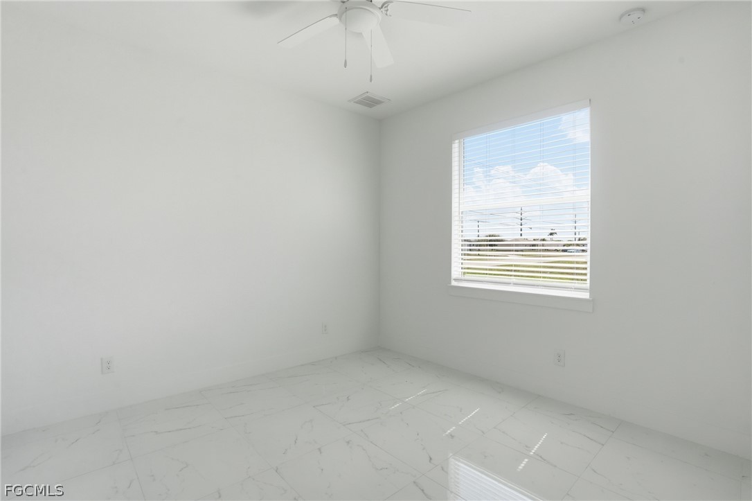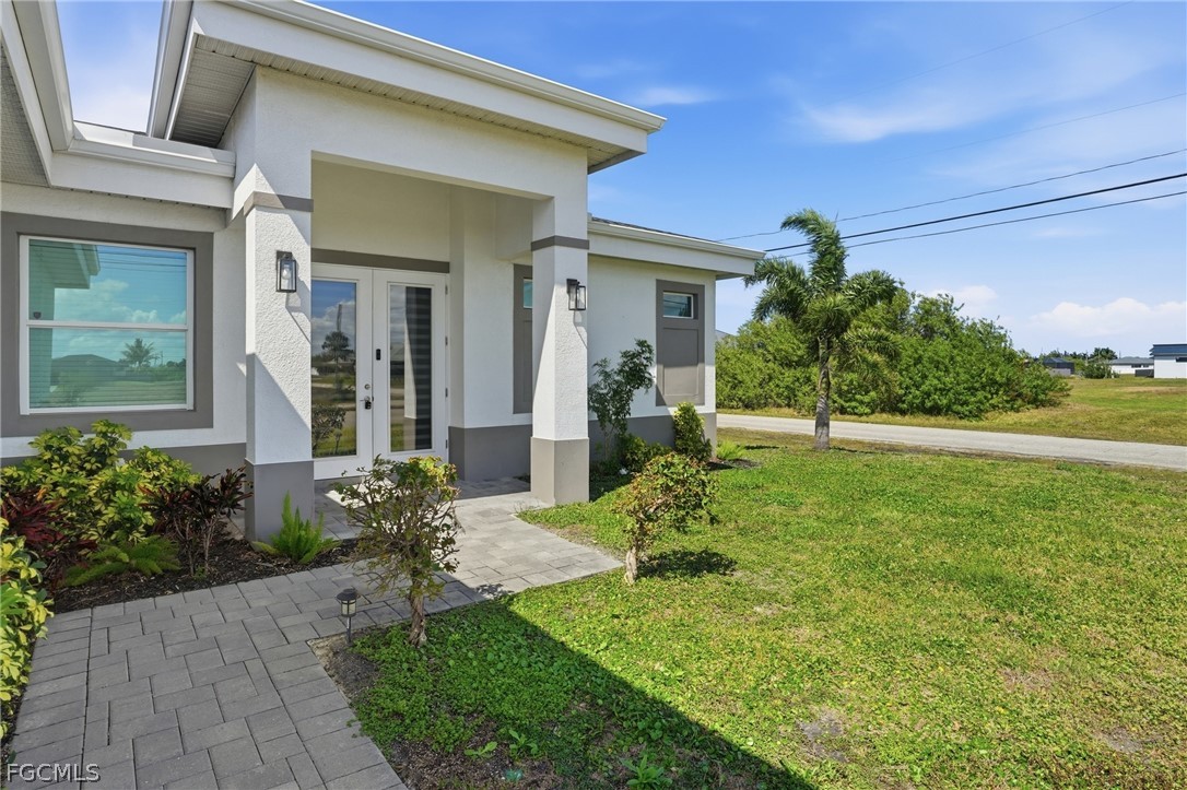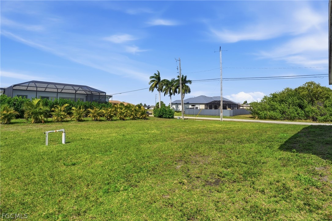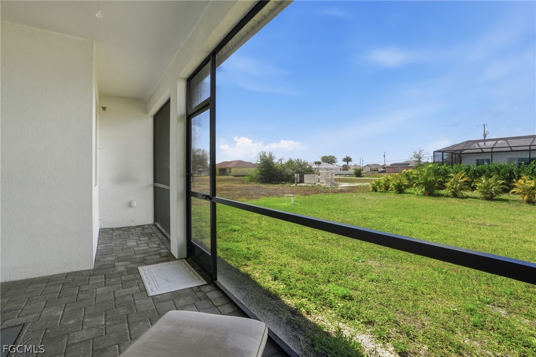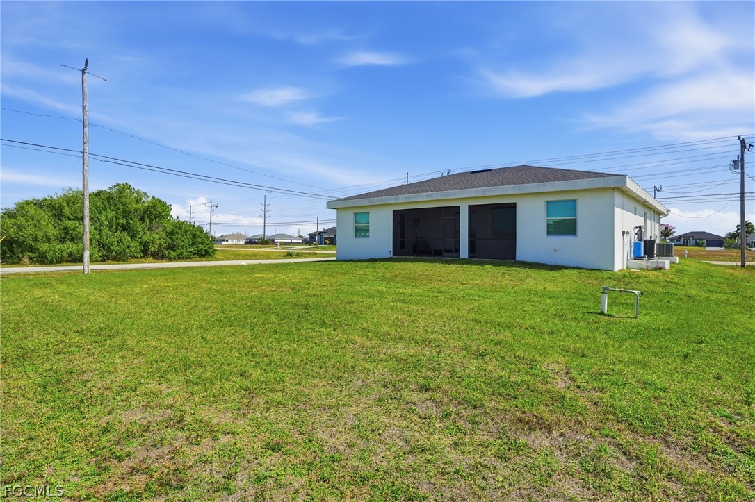Welcome to this beautifully built 2023 single-family home located in the desirable NW section of Cape Coral. Offering 3 bedrooms plus a den, 2 full baths, and 1,688 sq ft of living area, this well-designed residence combines modern style with comfortable everyday living. The open-concept great room floor plan features tile flooring throughout and a split-bedroom layout for added privacy. The spacious kitchen overlooks the main living and dining areas and includes a breakfast bar, pantry, and ample cabinetry—ideal for both entertaining and daily use. Sliding glass doors lead to a screened lanai, creating a seamless indoor-outdoor living experience with a peaceful landscaped view and desirable western rear exposure. The primary suite offers a walk-in closet and en-suite bath with dual sinks and a walk-in shower. Two guest bedrooms and a versatile den provide flexibility for a home office, study, or additional living space. Additional features include impact-resistant windows and doors, central electric heating and cooling, ceiling fans, laundry in residence, and window coverings throughout. Situated on an oversized double lot totaling approximately .25 acres (Lots 37 & 38), this property offers added space and privacy with no HOA fees and no rental restrictions. The attached 2-car garage includes an automatic garage door opener. The home is serviced by well water with a water treatment system and septic. Conveniently located near shopping, dining, schools, and everyday amenities, this move-in ready home presents a fantastic opportunity to own a newer construction property in a growing area of Cape Coral.