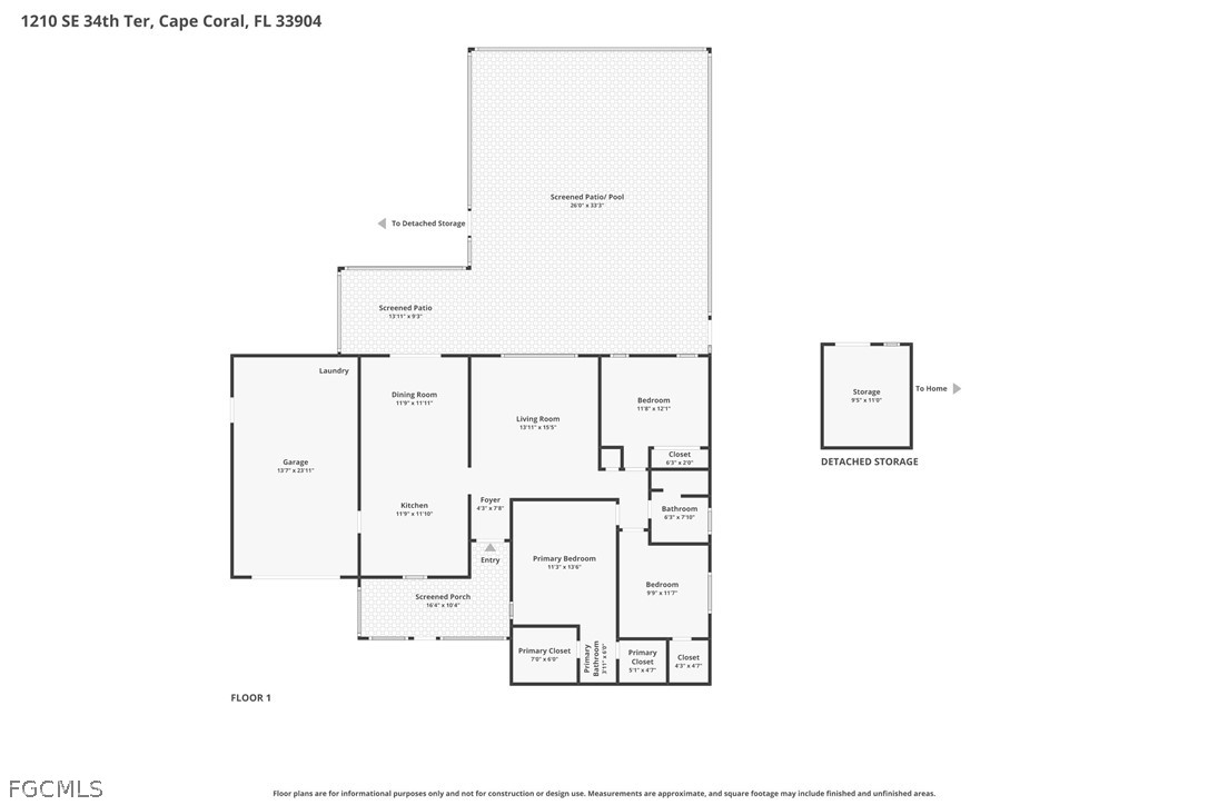 Welcome to 1210 SE 34th Terrace in beautiful Cape Coral! This well-maintained 3-bedroom, 2-bath home with a 1-car garage offers the perfect blend of comfort and Florida lifestyle. Located in desirable Southeast Cape Coral, the property features a private screened pool and spa, ideal for relaxing or entertaining year-round. Inside, you’ll find a functional layout with spacious living areas and plenty of natural light. Step outside to enjoy the outdoor living space, perfect for hosting gatherings or simply unwinding by the pool. The storage shed provides additional space for tools, hobbies, or outdoor equipment. Conveniently located near shopping, dining, and local amenities, this home offers both comfort and convenience in one of Cape Coral’s most popular neighborhoods. Whether you’re looking for a full-time residence, seasonal getaway, or investment opportunity, this property has so much to offer. Schedule your private showing today and start enjoying the Southwest Florida lifestyle!