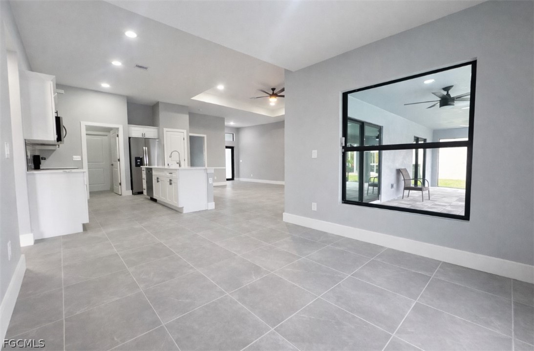 Inside, the home feels grand and open with soaring 16-foot ceilings, sleek modern tile flooring throughout, and oversized patio doors that flood the space with natural light. Every detail was thoughtfully designed to create an airy, upscale atmosphere perfect for both relaxing and entertaining.