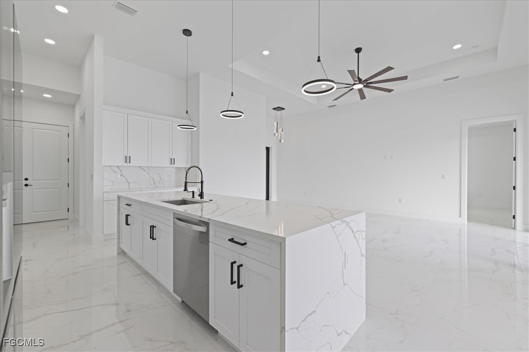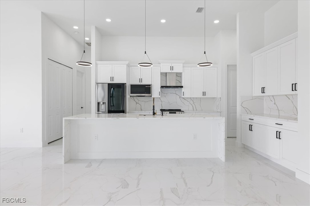 Under Construction. Located in desirable Port Charlotte, this exceptional brand-new construction home offers the perfect balance of upscale design and everyday convenience-just minutes from beautiful Gulf beaches, shopping, dining, and top-rated schools. This thoughtfully designed residence features 3 bedrooms, plus a den, 4 full bathrooms, and a 3-car garage, ideal for families, guests, or multigenerational living. Each bedroom includes its own private full bathroom, providing comfort and privacy for everyone. The primary suite is a true retreat, highlighted by a spa-inspired bath with dual walk-in closets and elegant finishes. The open-concept floorplan is enhanced by high ceilings, tile flooring throughout, LED lighting, and sleek modern lines. The gourmet kitchen steals the spotlight with a dramatic waterfall quartz island, premium cabinetry, and high-end trim details—perfect for entertaining or casual gatherings. An ample interior laundry room adds convenience and functionality. The 3-car garage offers abundant space for vehicles, storage, and all your Florida lifestyle toys. Built with attention to detail and quality craftsmanship, this home includes a builder warranty for added peace of mind. *Please note: Finished photos shown are of a completed model with the same floorplan. Finishes and colors may vary.* Modern, spacious, and ideally located—this home delivers new-construction peace of mind with luxury touches throughout. Don’t miss the opportunity to secure this stunning property ahead of completion.
