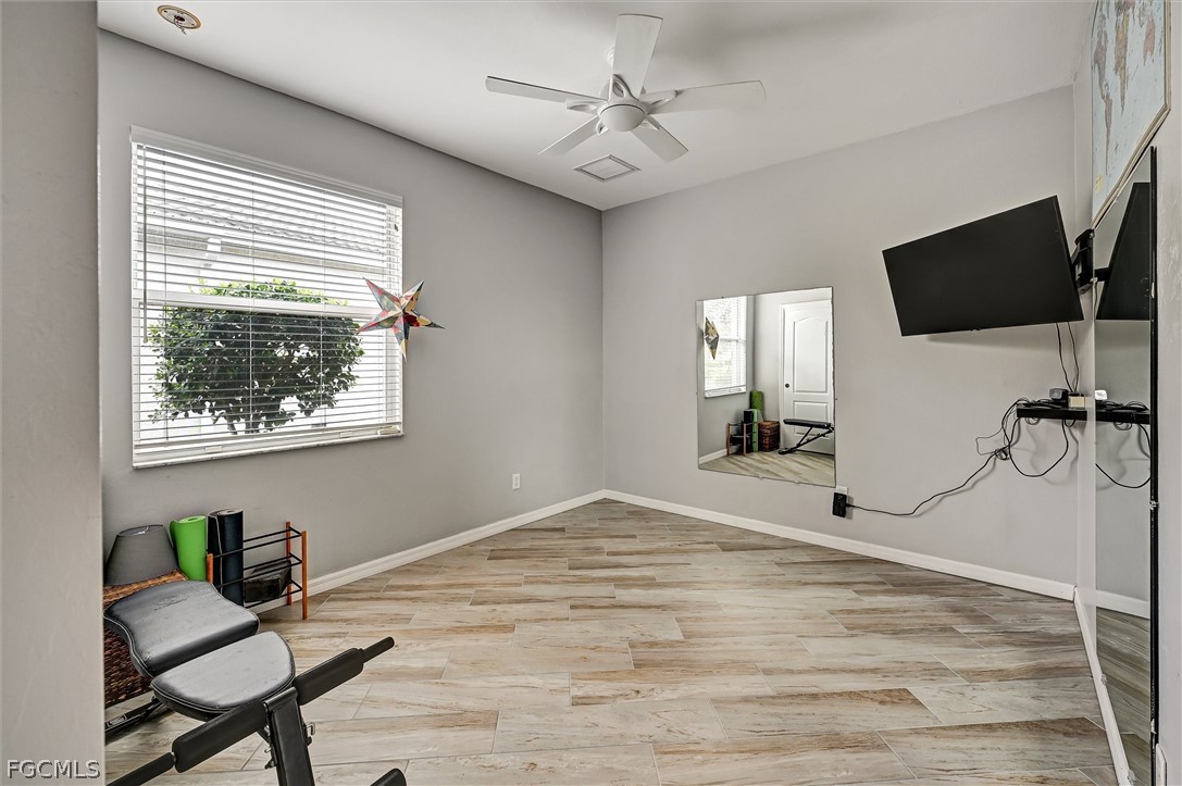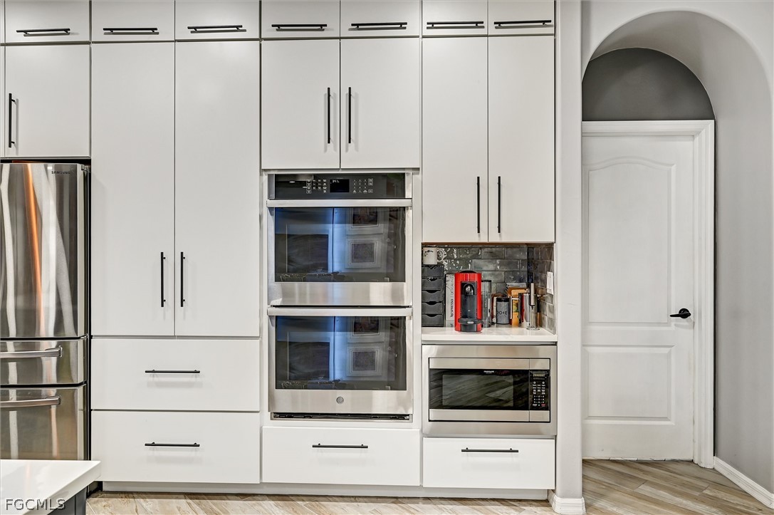 Impeccably maintained North Fort Myers home built by Meritage Homes, featuring 10/10 remodeled kitchen and bathrooms with high-end finishes and exceptional attention to detail. The interior shows like a model home and has been meticulously cared for throughout. Designed with a modern open floor plan, the home blends functionality with upscale finishes and all tile and wood flooring, creating a clean, durable, and elegant living space. The beautifully updated chef’s kitchen is the centerpiece of the home, featuring double ovens, modern cabinetry, and a large island with a dedicated coffee nook—perfect for both entertaining and everyday living. The island and coffee nook are finished in Silestone “Calacatta Gold,” while the back bar and open shelving showcase long-plank hickory butcher block, adding warmth and contrast to the space. The dishwasher and garbage disposal are both specifically low noise. You can barely hear the the dishwasher when it runs and the garbage disposal is also very quiet. Both bathrooms have been fully remodeled with a spa-like feel and quality craftsmanship throughout. The primary bath includes a 63-gallon soaking tub paired with an extra-high-flow designer faucet capable of filling the tub in just minutes for a true relaxation experience rarely found in residential construction. Step outside and enjoy the Florida lifestyle with a screened lanai, pergola sitting area, and a 900-square-foot patio expansion, offering exceptional space for relaxing or entertaining. The outdoor hot tub is included with the sale, creating a private backyard retreat. The seller is also including a fiddle-leaf fig houseplant as a unique design touch that complements the home’s aesthetic. Situated on a quiet cul-de-sac inside a beautiful gated community with a scenic 3-mile walking and biking path, the home is conveniently located near shopping, dining, boating, the Caloosahatchee River, and Downtown Fort Myers. A truly immaculate, move-in ready home with designer-quality upgrades already completed.