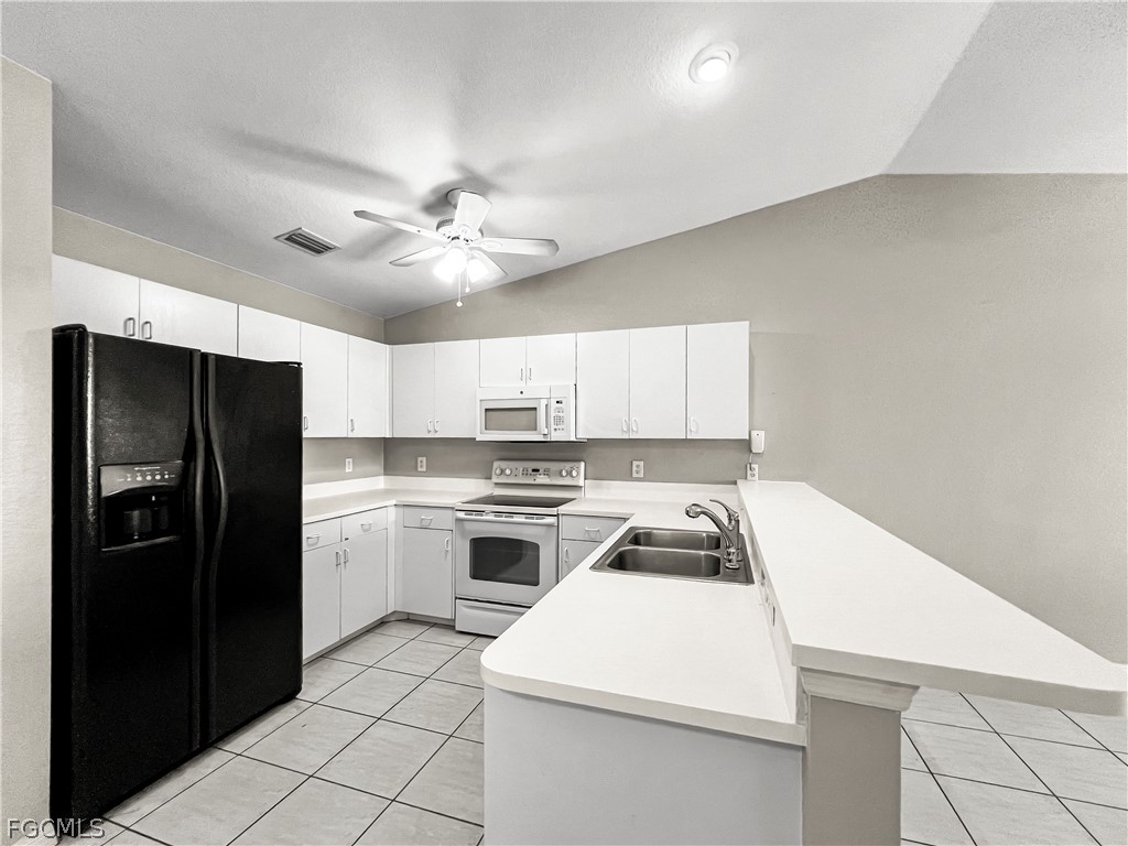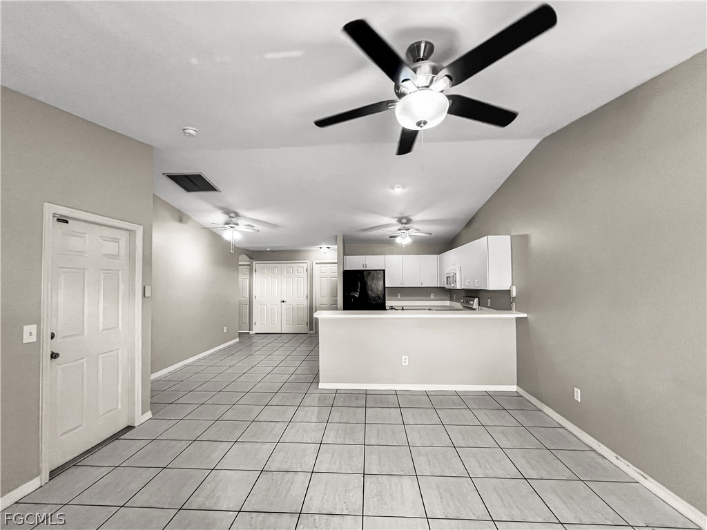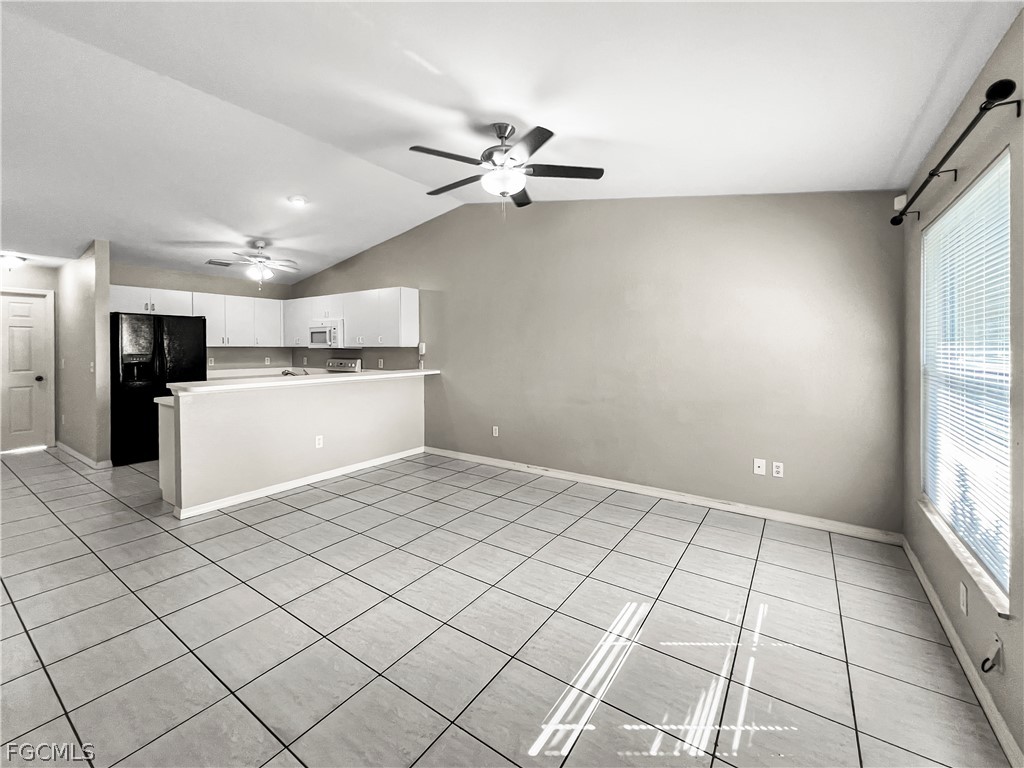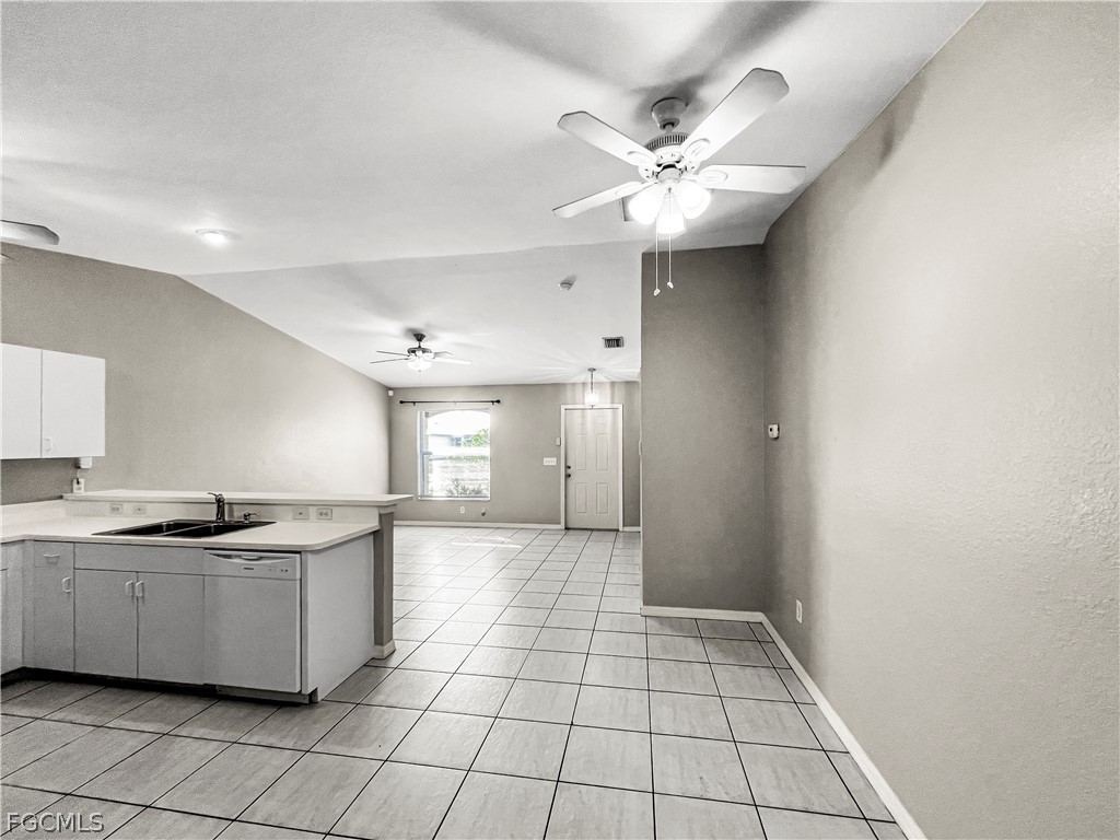 Inside you'll find a spacious open-concept layout with vaulted ceilings, creating an airy feel throughout the main living area. The kitchen features abundant cabinetry, modern appliances, and a breakfast bar that opens directly to the living space, perfect for entertaining or casual dining.