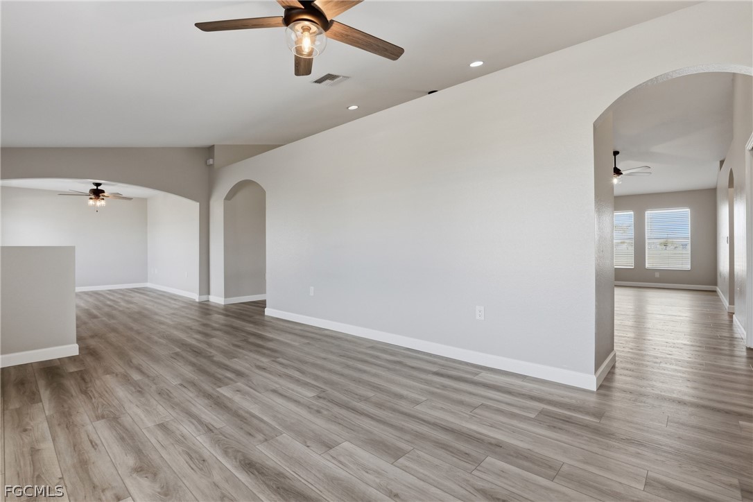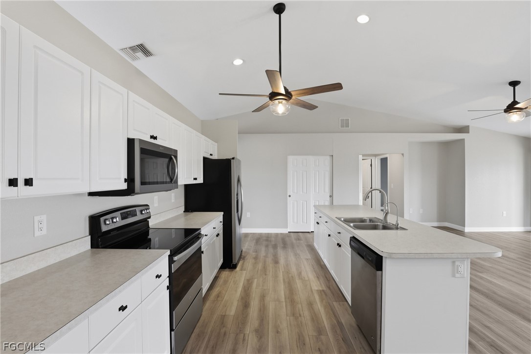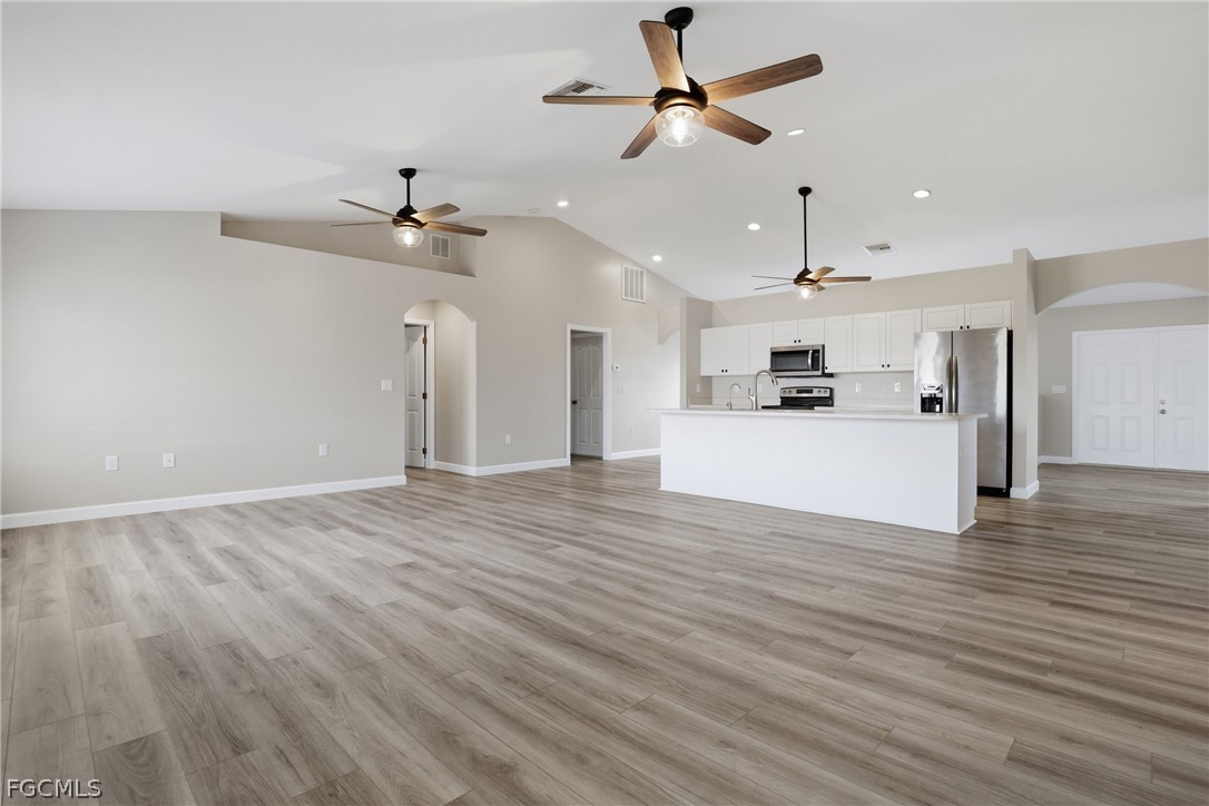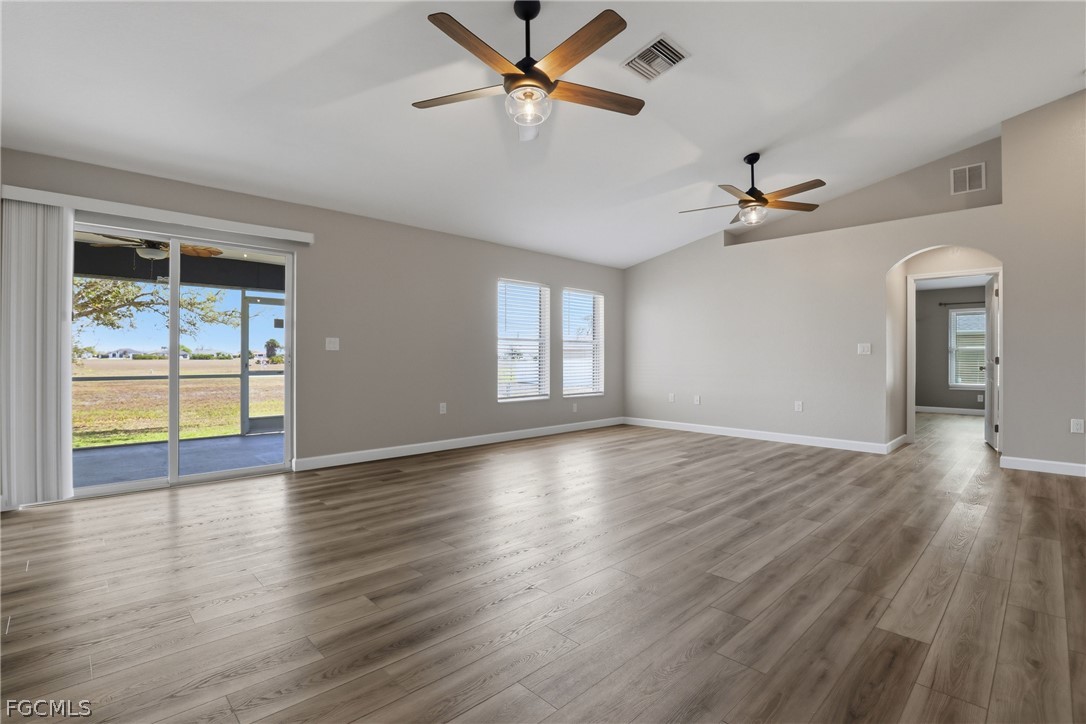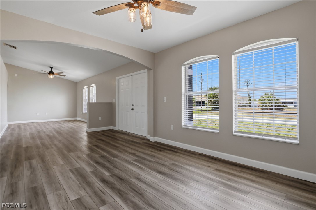 Welcome to your Cape Coral upgrade, where peace of mind meets modern Florida living! This beautifully refreshed home delivers the kind of updates you'll wish you didn’t have to think about if you buy anywhere else, because here they’ve already been done for you! Step inside to an open floor plan with soaring cathedral ceilings which create a light, airy space which instantly feels like home. The entire interior has been completely revitalized in 2025-2026 with new luxury vinyl plank flooring, fresh paint, updated baseboards and plantation blinds giving the home a clean, cohesive, move-in-ready feel. The kitchen has been thoughtfully enhanced with an added pantry, reverse osmosis water system under the sink AND for the refrigerator, garbage disposal, plus updated fixtures, making it both functional and elevated for everyday living. Enjoy Florida living year-round from your re-screened lanai, surrounded by fresh landscaping (with a fully operational sprinkler system so it stays looking great) and cooled by one of the 9 remote-controlled ceiling fans recently added throughout this home. But what *truly* sets this property apart? The major system upgrades—DONE: New roof (2025) - 3.5 ton A/C system with UV light (2024) - Solar panels (2022: avg electric bill ~$30/month) *will be paid off at closing - Water softener (2022) - Well pump (2024) - Septic pumped & inspected (2026) - Soffit & facia replaced (2024/2025). Additional updates such as new primary suite windows, a new primary shower door, new upgraded fixtures in both bathrooms, new outlets and switches throughout, and full exterior paint mean this home truly lives like new: without the wait or added expense! Safety and convenience are covered here, too with whole-home hurricane shutters, a Wi-Fi-enabled garage door opener, and a Blink security system with 2 cameras, doorbell camera and Sync module included. If you’ve been searching for a home thats even better than new, where the big-ticket items have been handled and the style is already on point—this is it!