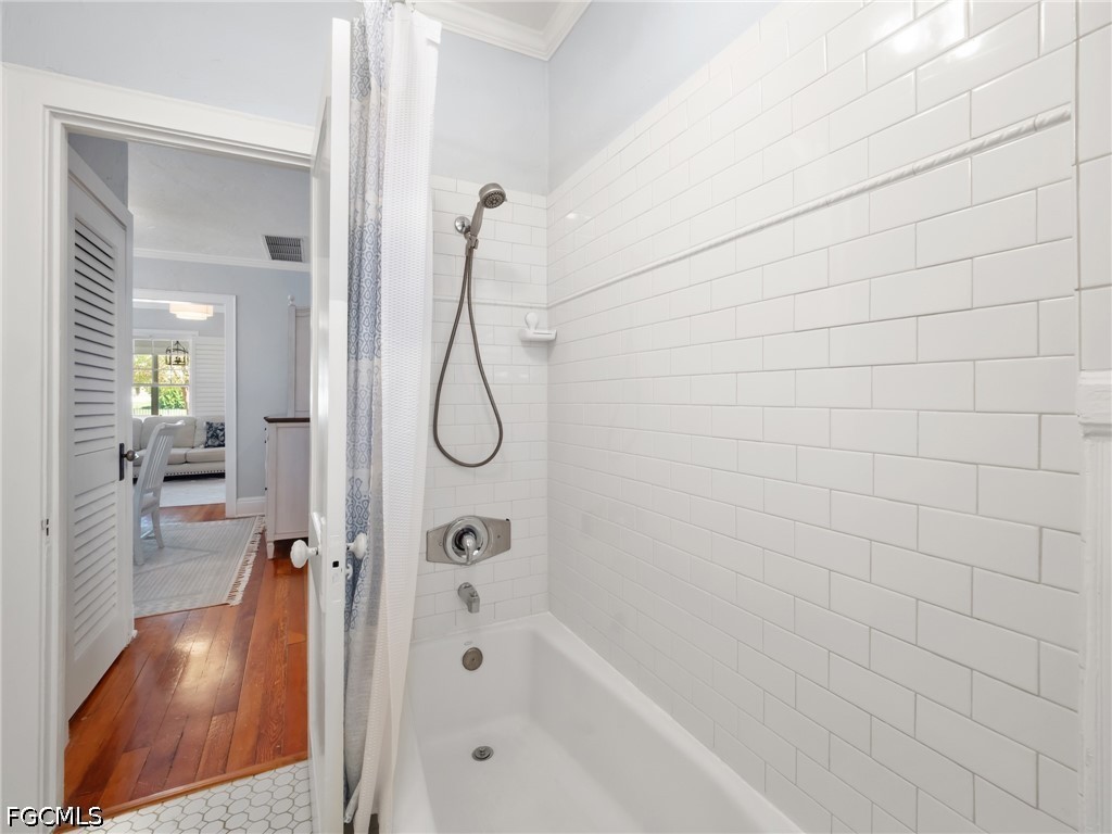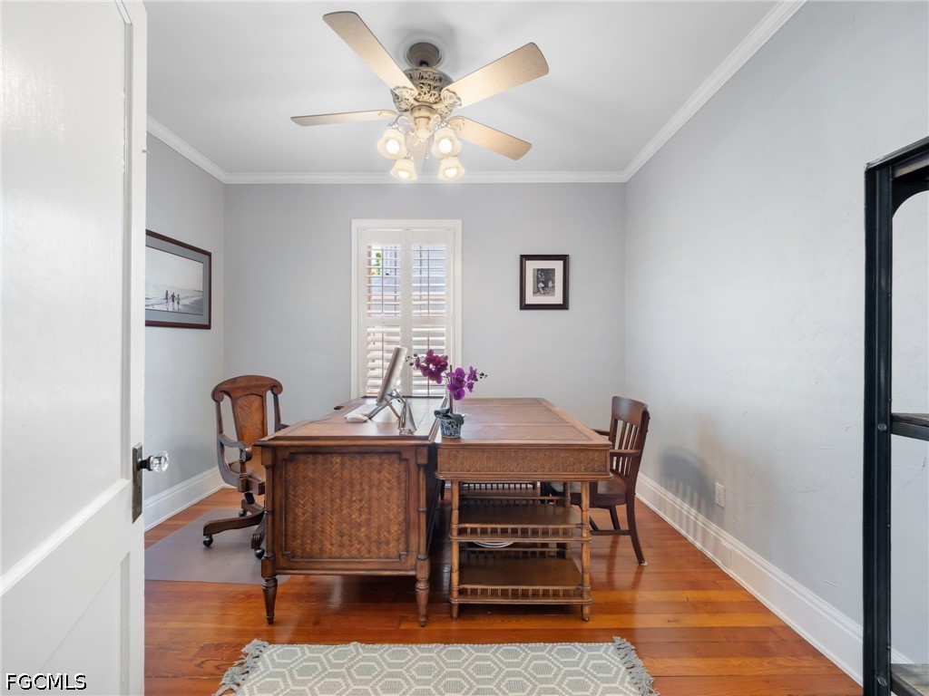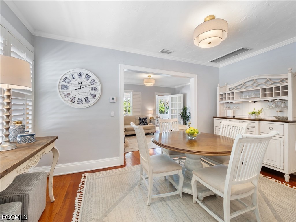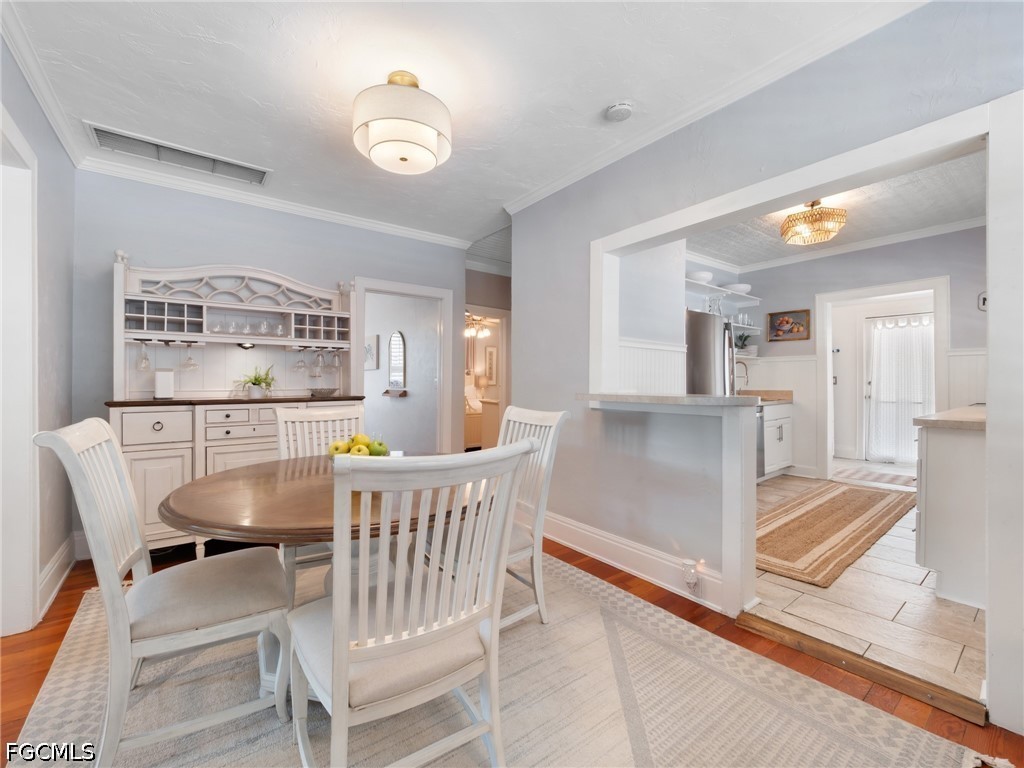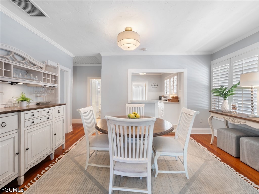 This 1922 Aladdin “Sunshine” model home showcases many original features, preserving the character and craftsmanship of Old Fort Myers while offering the flexibility today’s buyers are seeking. Original wood flooring runs throughout the home, beautifully maintained and reflective of its enduring quality. Perfectly positioned just three doors from the Caloosahatchee River, the setting is as special as the home itself, beneath the iconic canopy of poinciana trees.