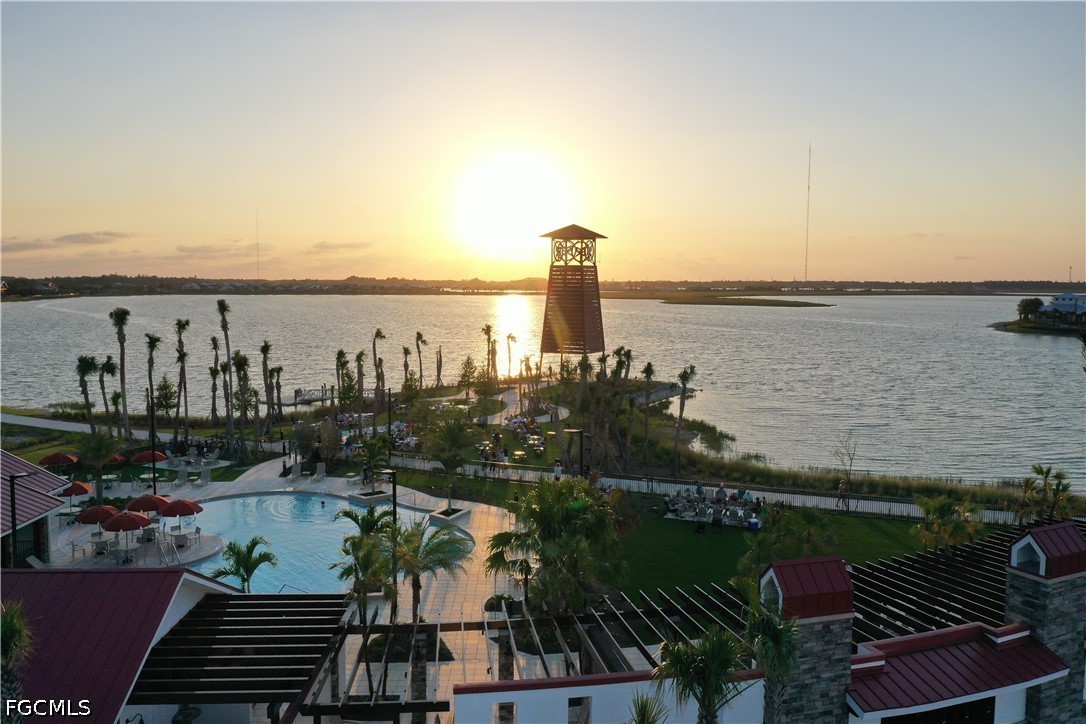 Don’t miss your chance to own the popular Myers floor plan in Waterview Landing! This exceptional homesite features stunning water views and desirable western exposure on Lake Babcock, creating the perfect setting for unforgettable sunsets year-round. The thoughtfully designed open-concept layout blends the living, dining, and kitchen areas into one bright, airy space filled with natural light and picturesque lake views. Beautiful faux beams highlight the great room living area. The kitchen is beautifully appointed with quartz countertops, quality wood cabinetry, stainless steel appliances, and a natural gas cooktop—ideal for everyday living and elevated cooking experiences. The primary suite offers a peaceful escape with expansive water views and a spa-like bathroom featuring dual vanities, quartz surfaces, and elegant finishes. A Jack-and-Jill bedroom and bath arrangement adds flexibility and privacy for guests or family. Built to current Florida standards, the home includes impact-resistant windows and doors for added security, efficiency, and comfort, along with a builder warranty for confidence in your investment. A limited-time rate buydown opportunity is also available. Situated in Babcock Ranch, the nation’s first solar-powered town, residents enjoy access to resort-style amenities, miles of scenic trails, and a dynamic community focused on sustainability and outdoor living. Please see MLS supplements for design selections and floor plan details. Lot 7.