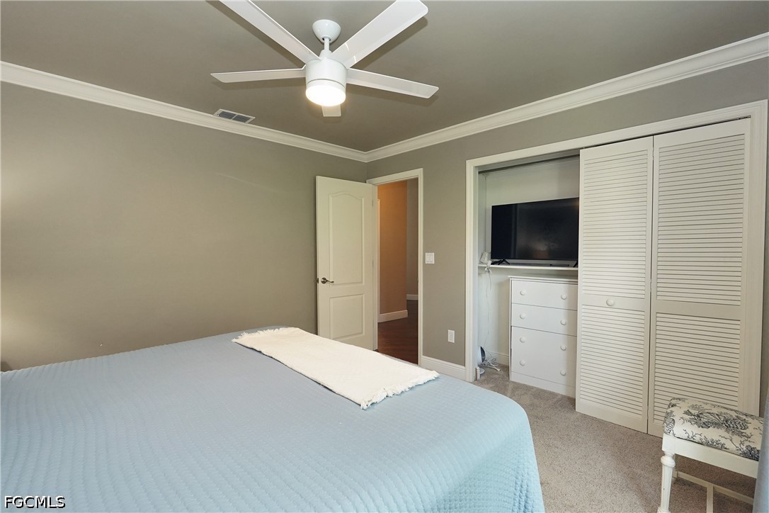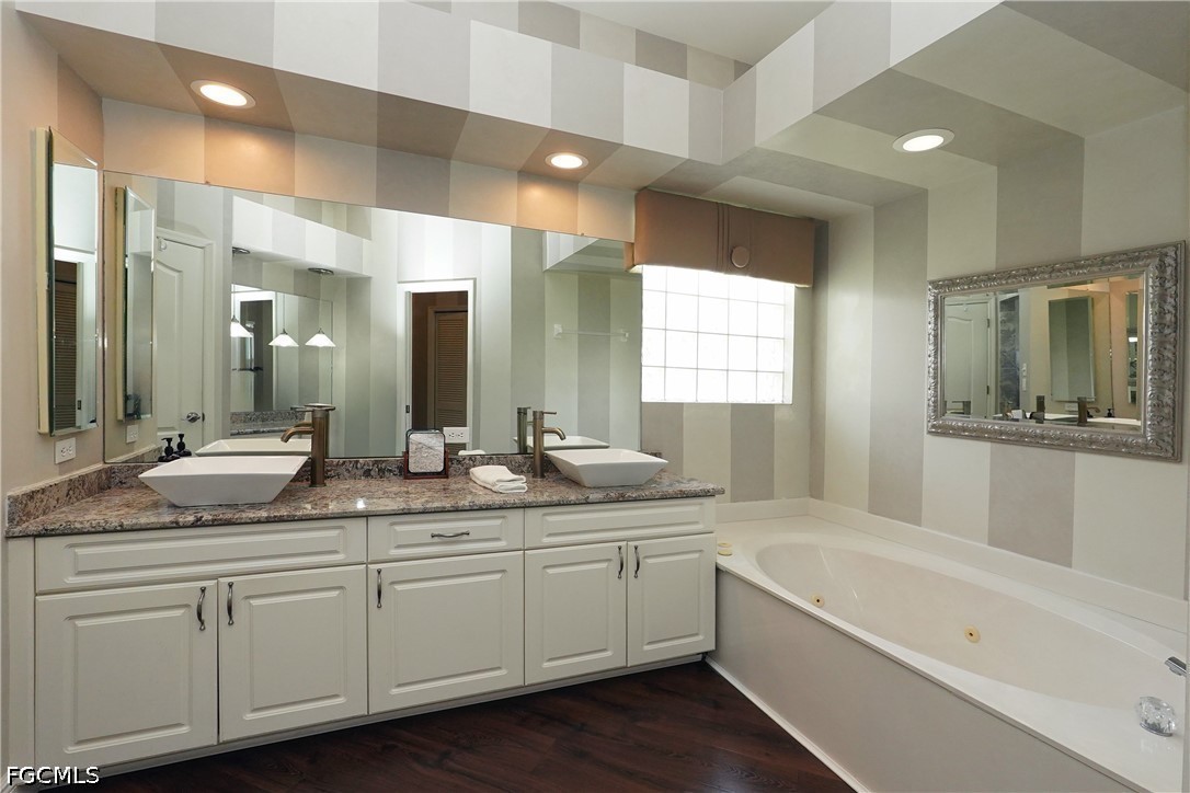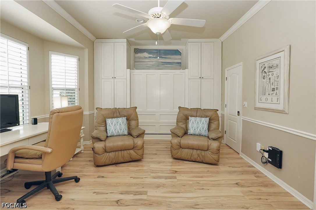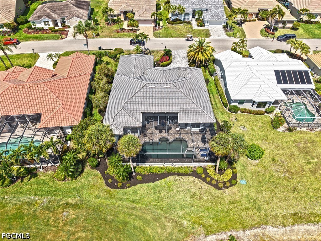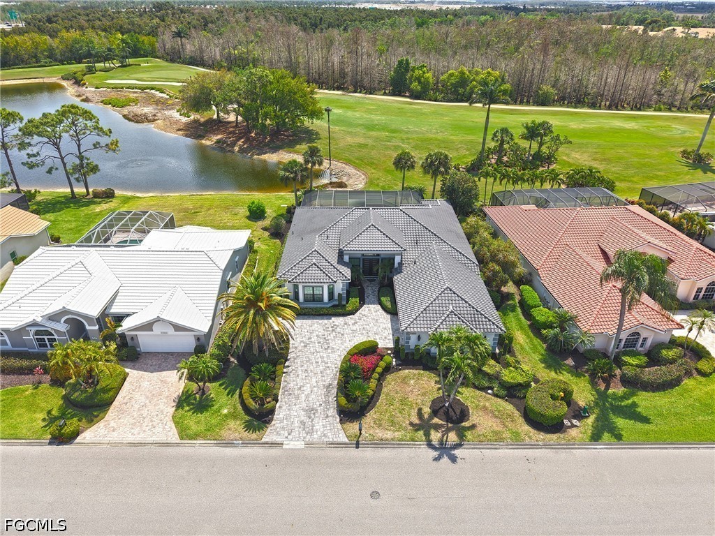 An exquisite residence of distinction on The Boulevard, where modern fortification meets the timeless allure of the 14th fairway. Beyond the paver driveway and new hurricane-rated double doors, the home unfolds with an air of sophisticated ease, leading from a grand foyer to an expansive, renovated lanai. Here, retiled surfaces and picture-window screens offer an unobstructed panorama of the golf course and a resident osprey nest—the perfect gallery for sunrise views.
