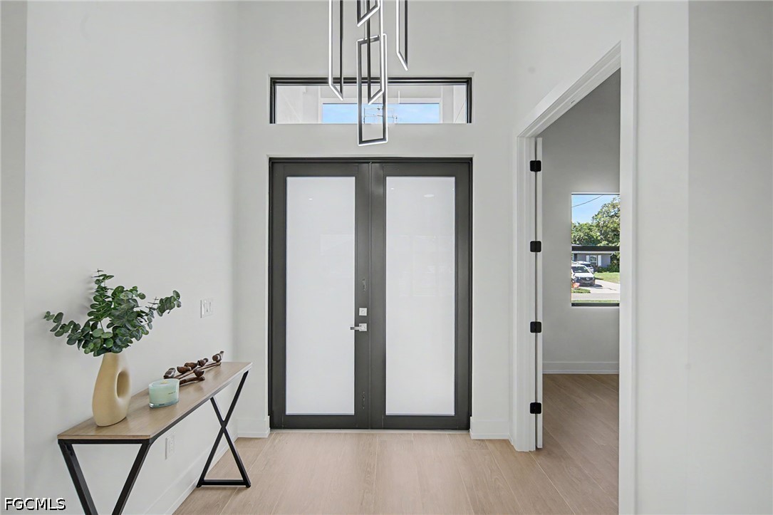 From the moment you step inside, you are embraced by a profound feel of warmth that radiates through a layout that is exceptionally practical and functional for modern living. The residence greets you with soaring 16-foot ceilings in the entry and den, transitioning into a sophisticated 14-foot tray ceiling in the main living room and a 12-foot tray ceiling in the master suite, which features large his-and-hers walk-in closets. Security and peace of mind are built into the design with full impact windows and doors throughout. Every room is anchored by the stunning, expansive look of Italian 12x72 porcelain tile flooring, providing a seamless, high-end foundation that perfectly complements the 8-foot interior doors and 6" custom baseboards.